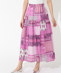 晴れた休日、リラックスムードな1日には、PLAYFULLなふんわりスカートで。パッチワーク風にプリントされたエスニック柄がランダムに揺れるスカートは遊び心のある1枚。プリントカラーにある色と合わせると全体がまとまるのでおすすめ。初夏の日差しにはクリアな白はいかが?