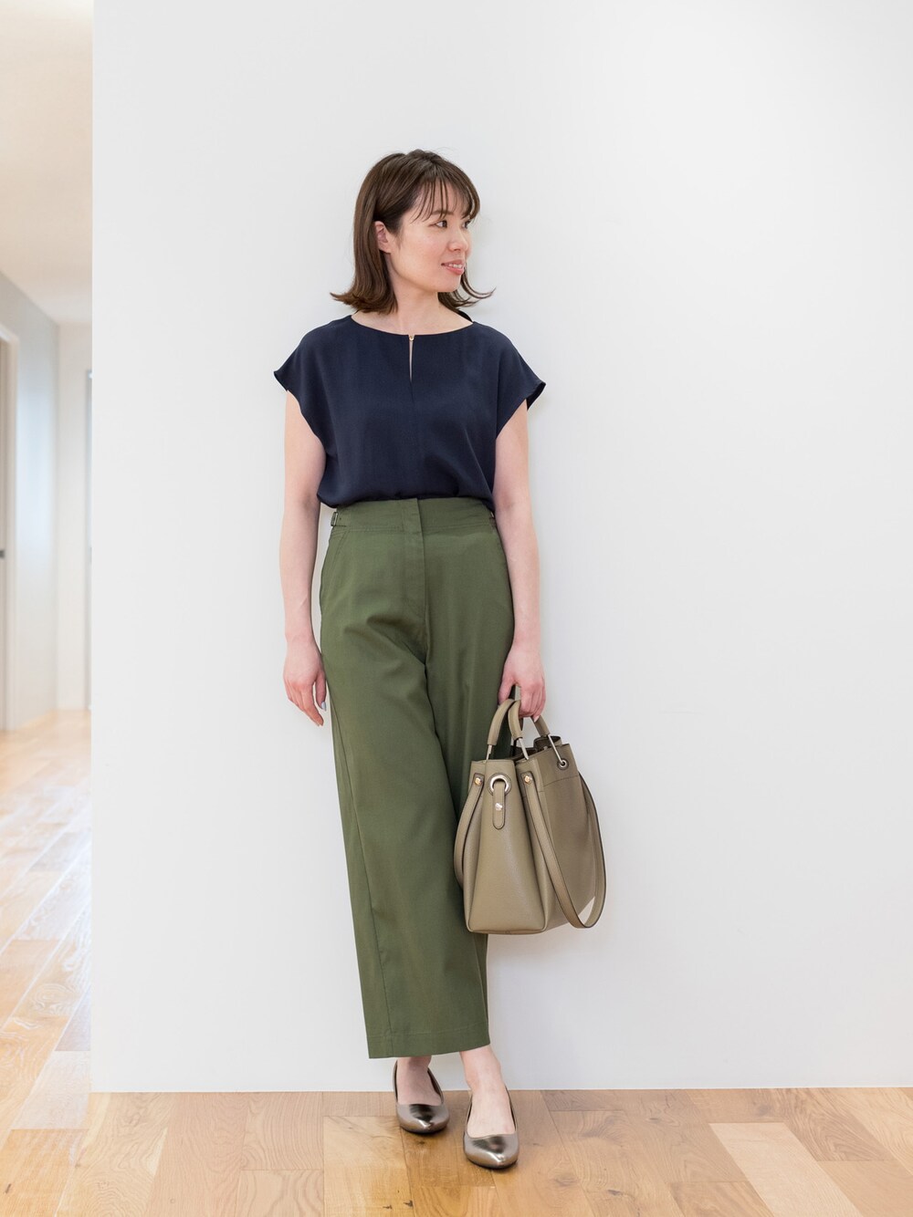 胸元のさりげないゴールドパーツがネックレス変わりになって◎気の利いたアイテムは朝の強い味方に。1枚でサマになるブラウスは何枚でも欲しい!
