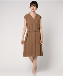 落ち感のあるとろみ素材のスキッパーワンピースは絶妙なカットでデコルテをきれいに見せてくれ、オフィススタイルには欠かせない、レディライクな1枚。
