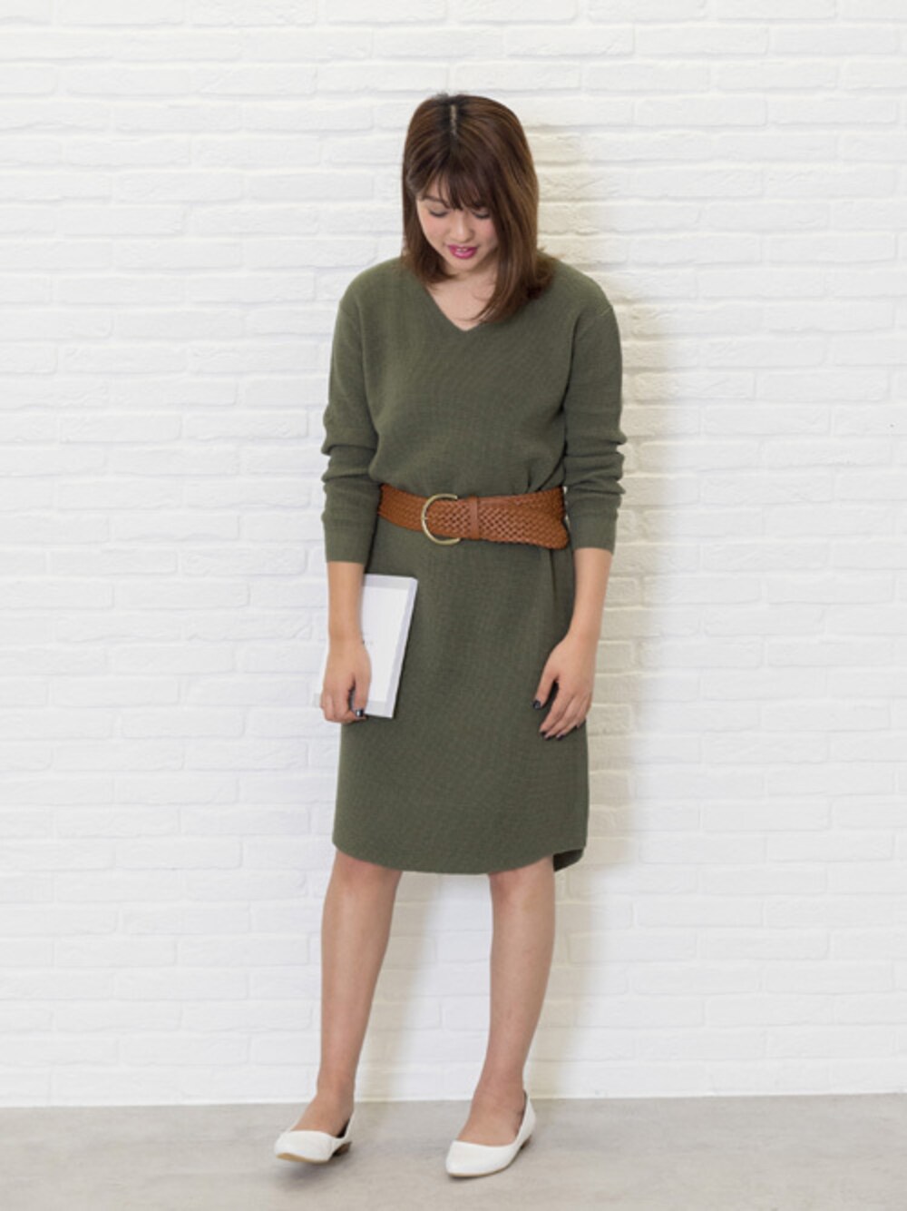 NBB STAFF 18のワンピース「ワッフルニットワンピース」を使ったコーディネート