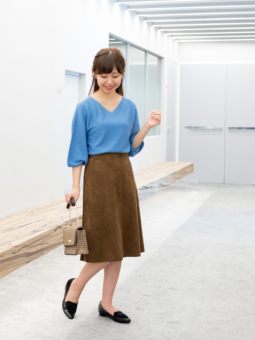 秋の通勤コーデ♪ふっくらフォルムに上品なラメが華やかなプルオーバーニットは、糸から編み立てまで日本製にこだわったMADE IN JAPAN。