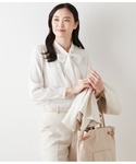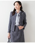 ネイビーベースのツィードセットアップ。 ハリのある生地で少し硬めな着心地です。 その分身体のラインを拾いにくくスッキリしたシルエットをキープしてくれます。 インナーブラウスはリボンタイデザインで華やかさて柔らかみをプラス。 リボンタイの結び方で印象が変わります。 長い季節使えるベーシックなデザインです。 会食や式典なで様々なシーンで活躍するセットアップスタイリングです。