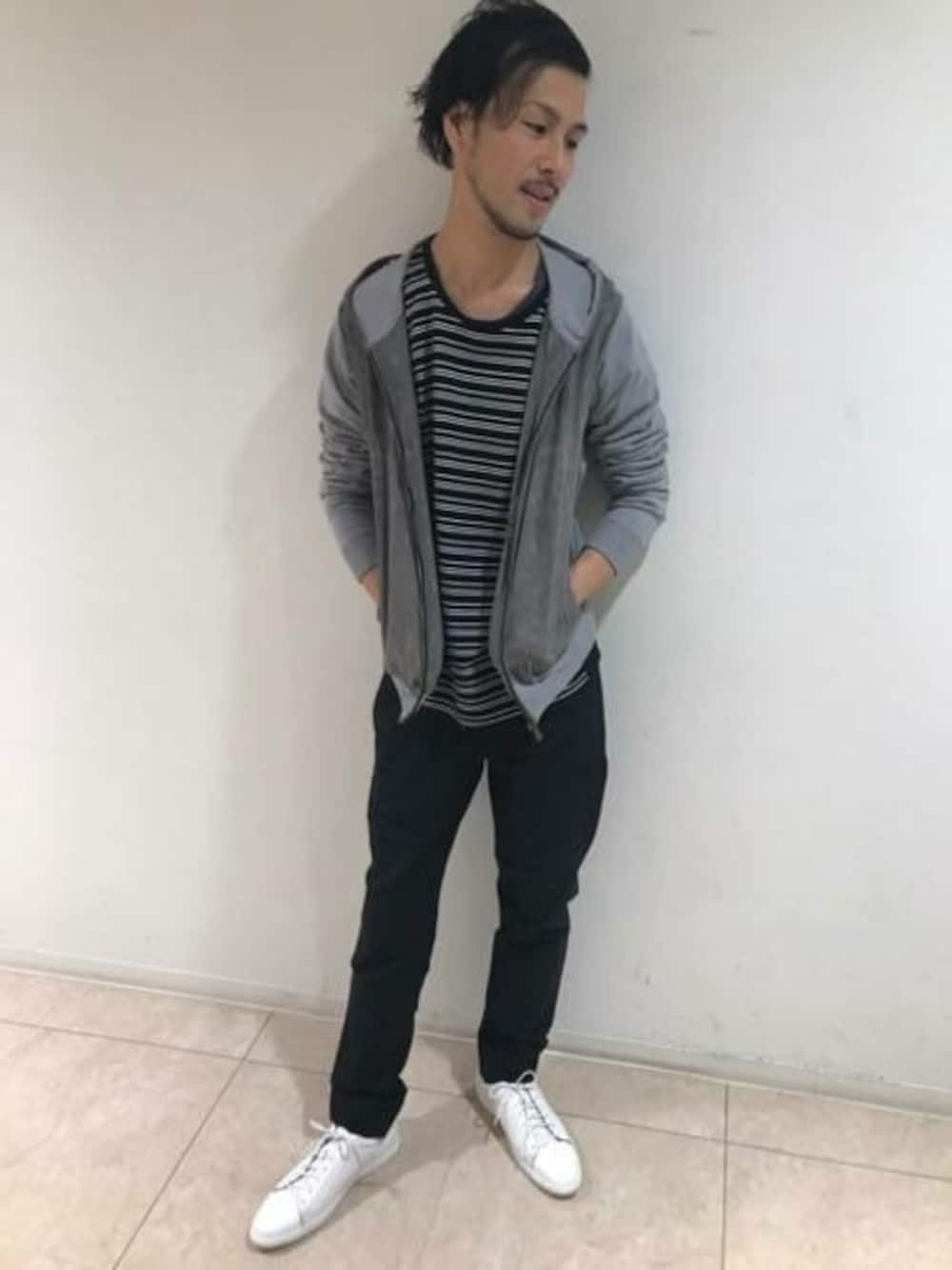 スエットパンツにスニーカー×パーカーでよりリラックス感のあるカジュアルスタイルになっています。 パーカーの独特な風合いで、 大人っぽさも演出出来るようなスタイルです。 MONSIEUR NICOLE新宿マルイメン