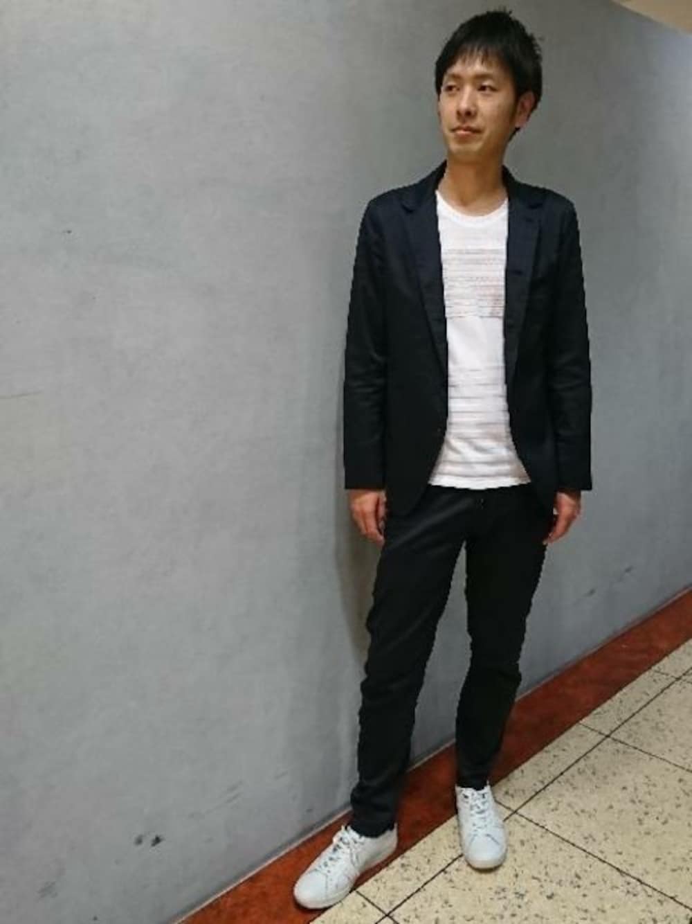 アウトラストという、体温調節機能のある素材を使用したセットアップです。 サラッとした着心地が特徴です。 インナーとシューズは白で統一し、トレンド感を出しています。 NICOLE CLUB FOR MEN東武百貨店池袋店