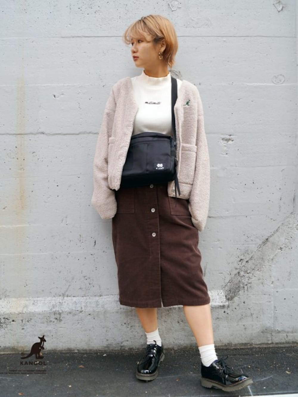 WEB別注KANGOL X 179/WGコラボボアジップカーディガンを使ったコーデ。