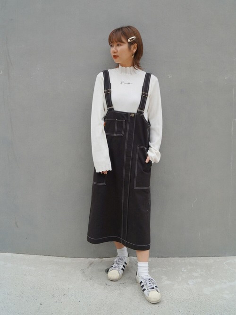 ニコルのジャンパースカート「Iラインミドル丈ジャンスカ」を使ったコーディネート