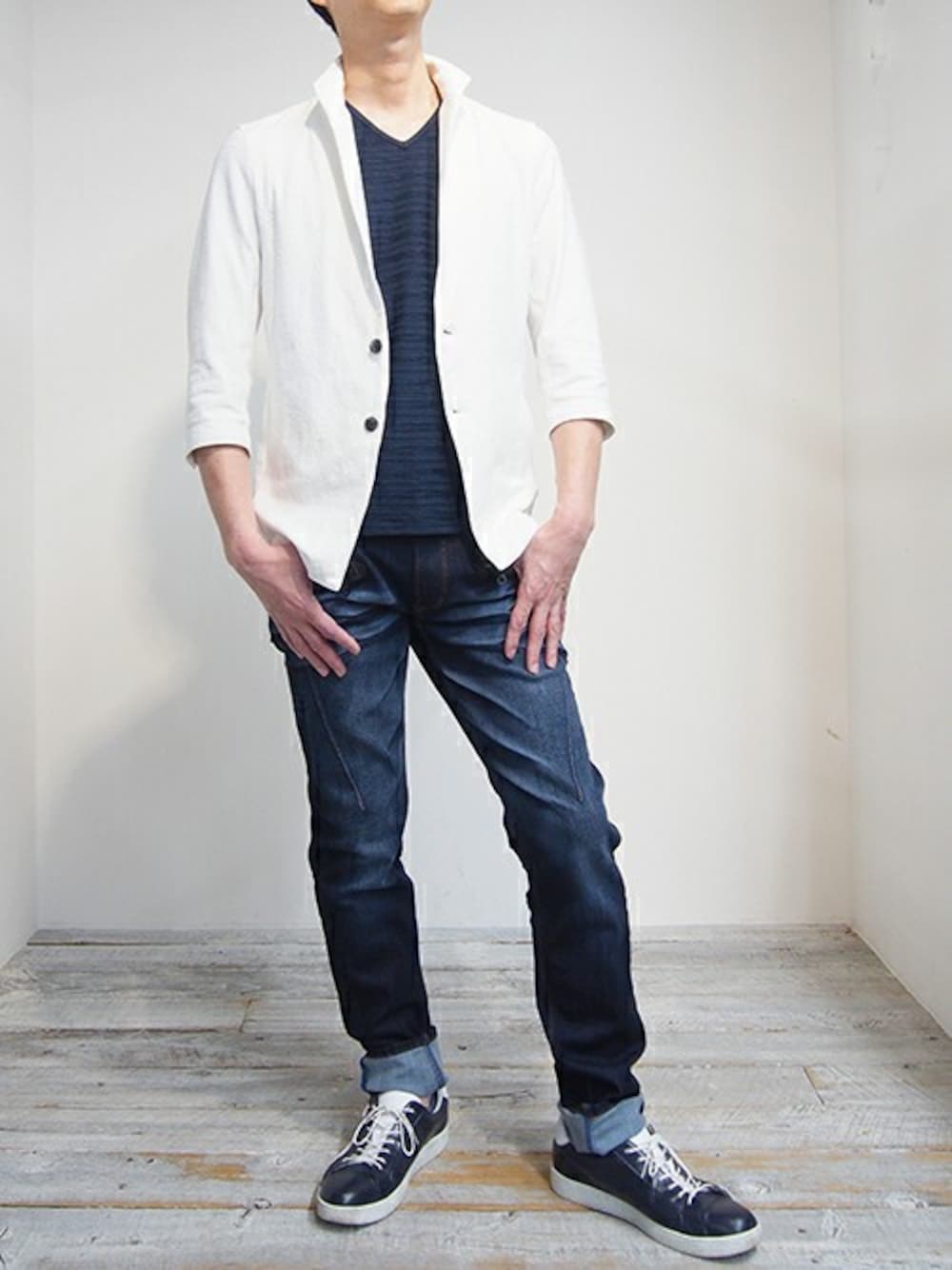 ニコルのテーラードジャケット「スタンド七分丈デザインジャケット」を使ったコーディネート