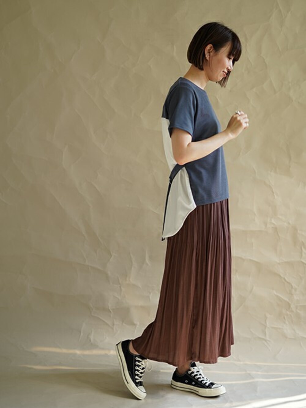 ニコルのTシャツ/カットソー「異素材コンビデザインTシャツ」を使ったコーディネート