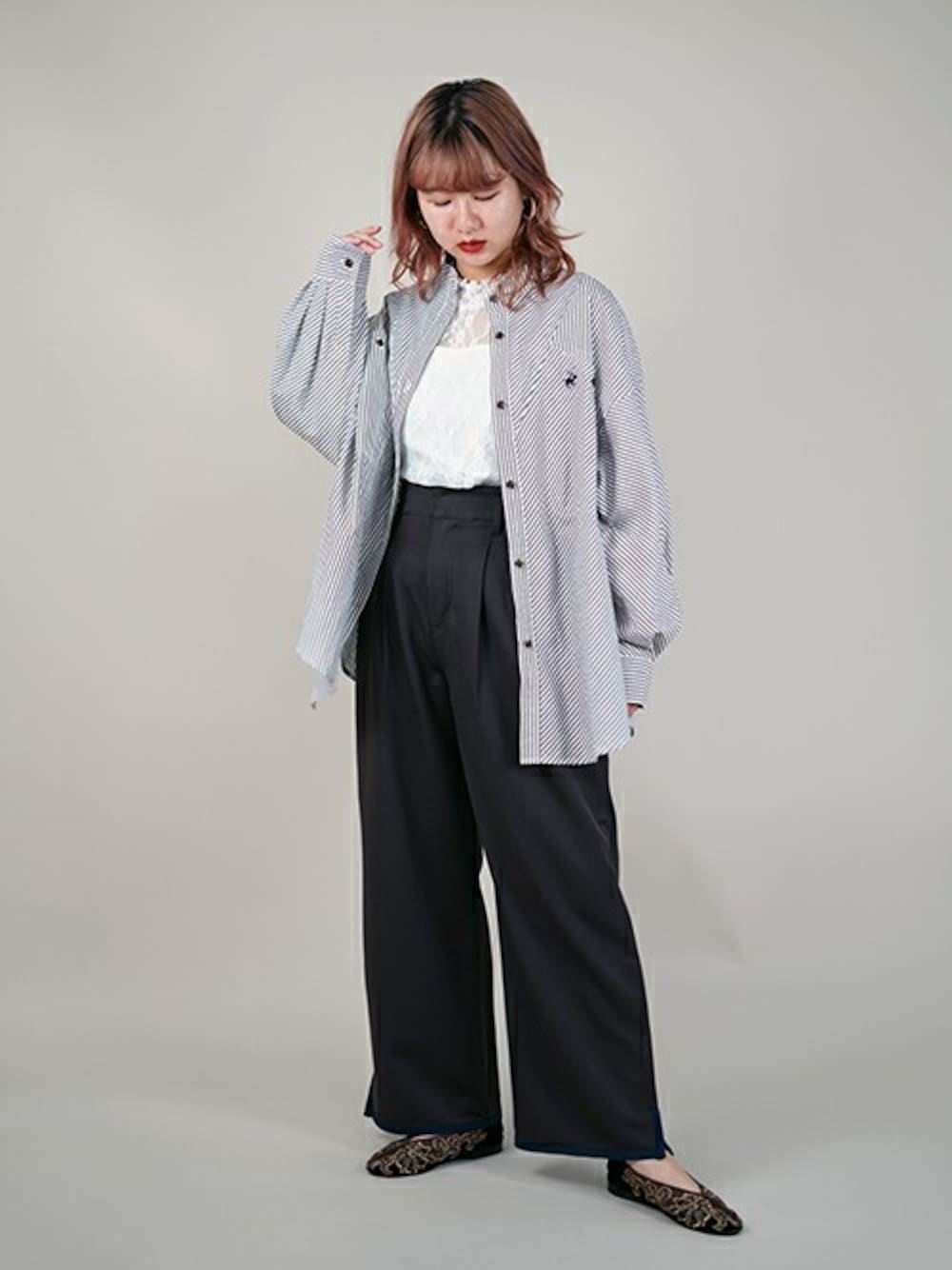 ニコルのシャツ/ブラウス「BEVERLY HILLS POLO CLUBコラボストライプシャツ」を使ったコーディネート
