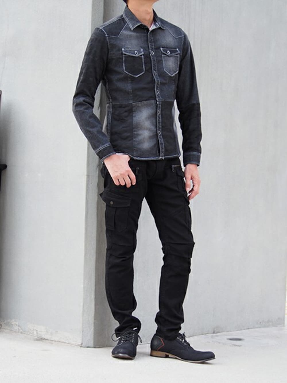 【HIDEAWAYS Instagram:@hideaways_official】 パッチワークデニムシャツ¥11,880