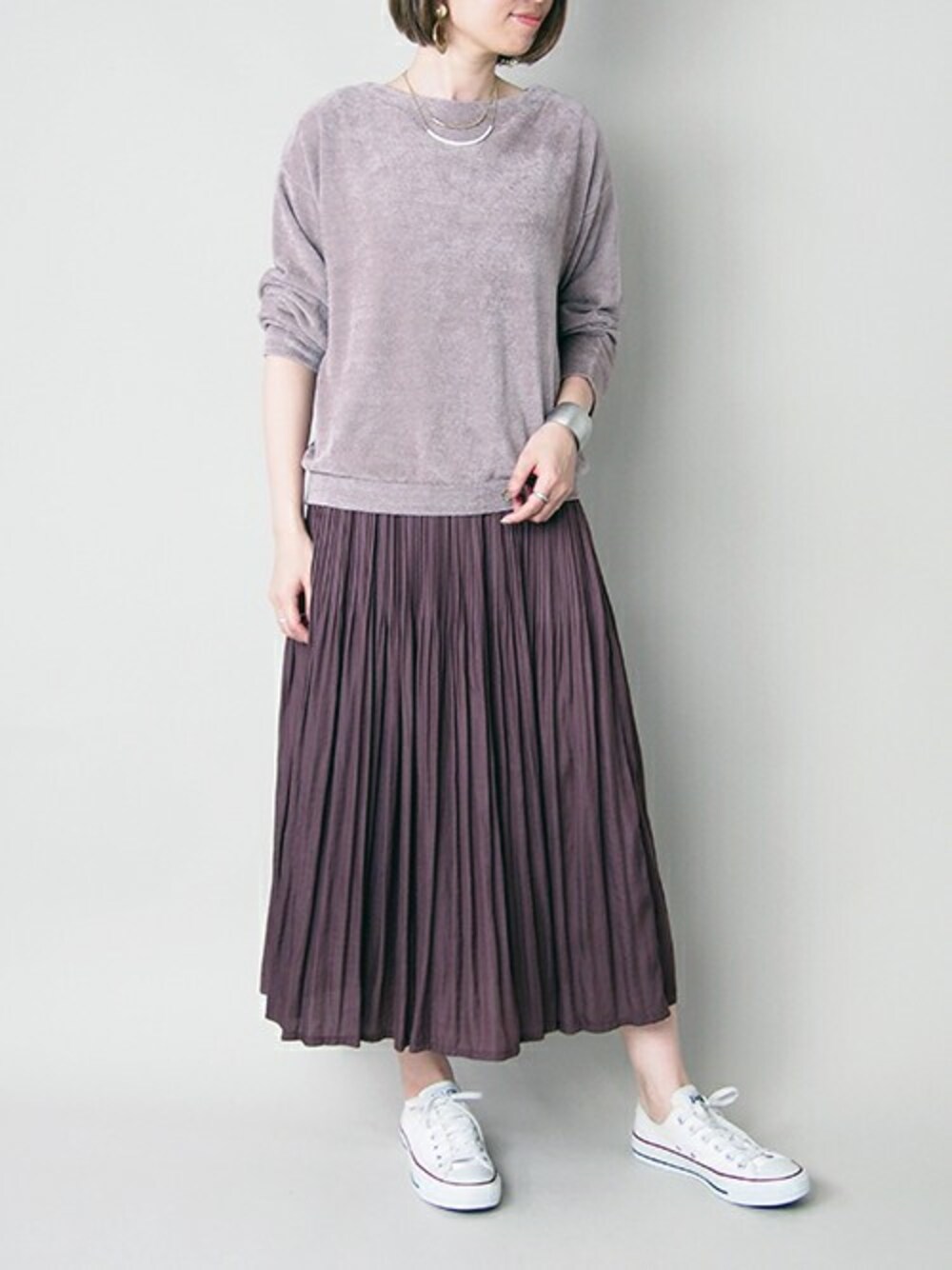 ニコルのスカート「ヴィンテージサテン消しプリーツスカート」を使ったコーディネート