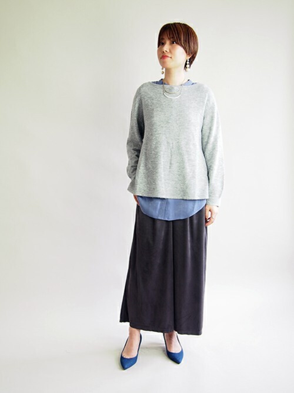 ニコルのシャツ/ブラウス「ニット&バンドカラーシャツ」を使ったコーディネート
