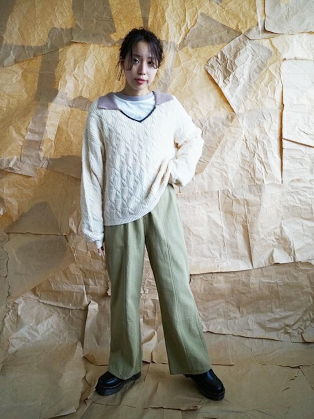 ニコルのニット/セーター「衿付き配色ニット」を使ったコーディネート