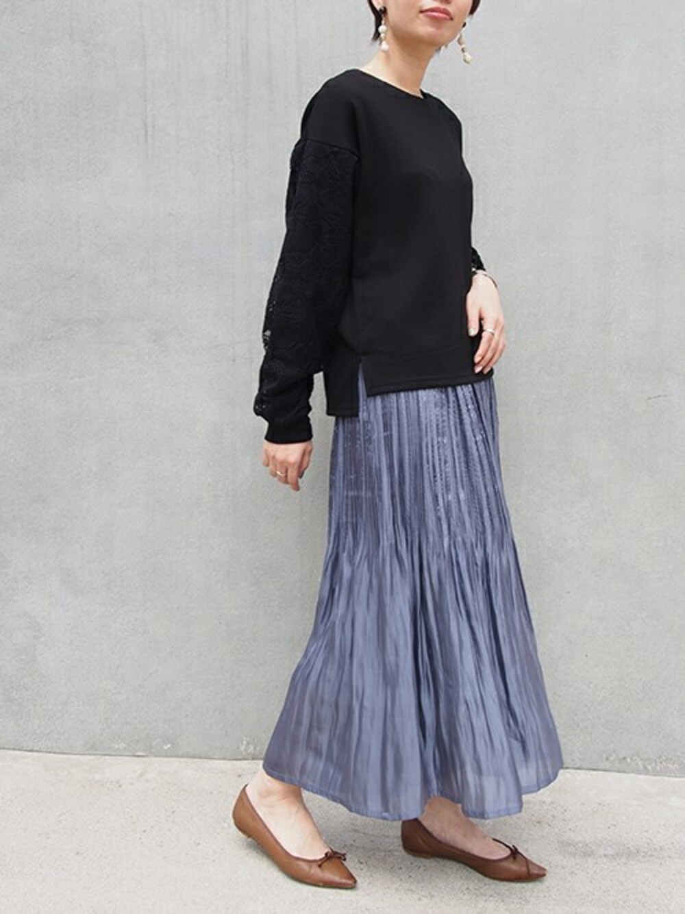 ニコルのスカート「ミジンコール消しプリーツスカート」を使ったコーディネート