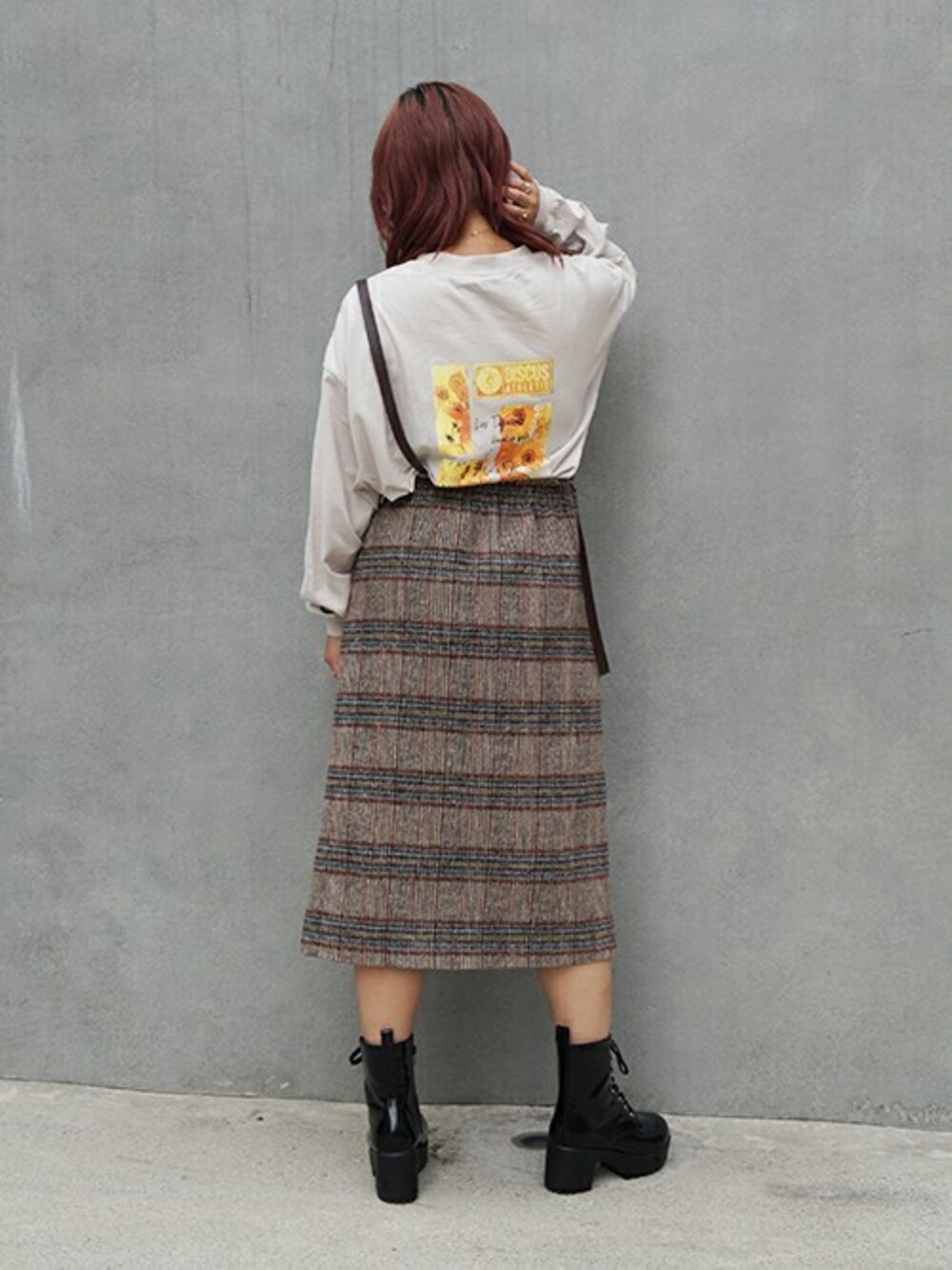 ニコルのスカート「サスペンダー付きチェックスカート」を使ったコーディネート