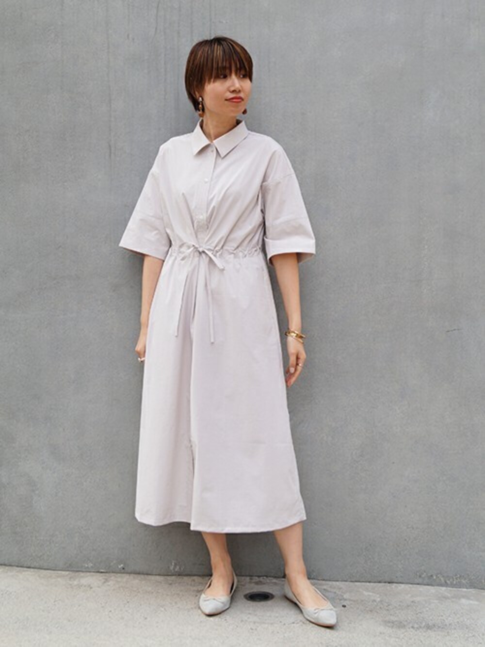 ニコルのワンピース「ウエストドロストボックスワンピース」を使ったコーディネート