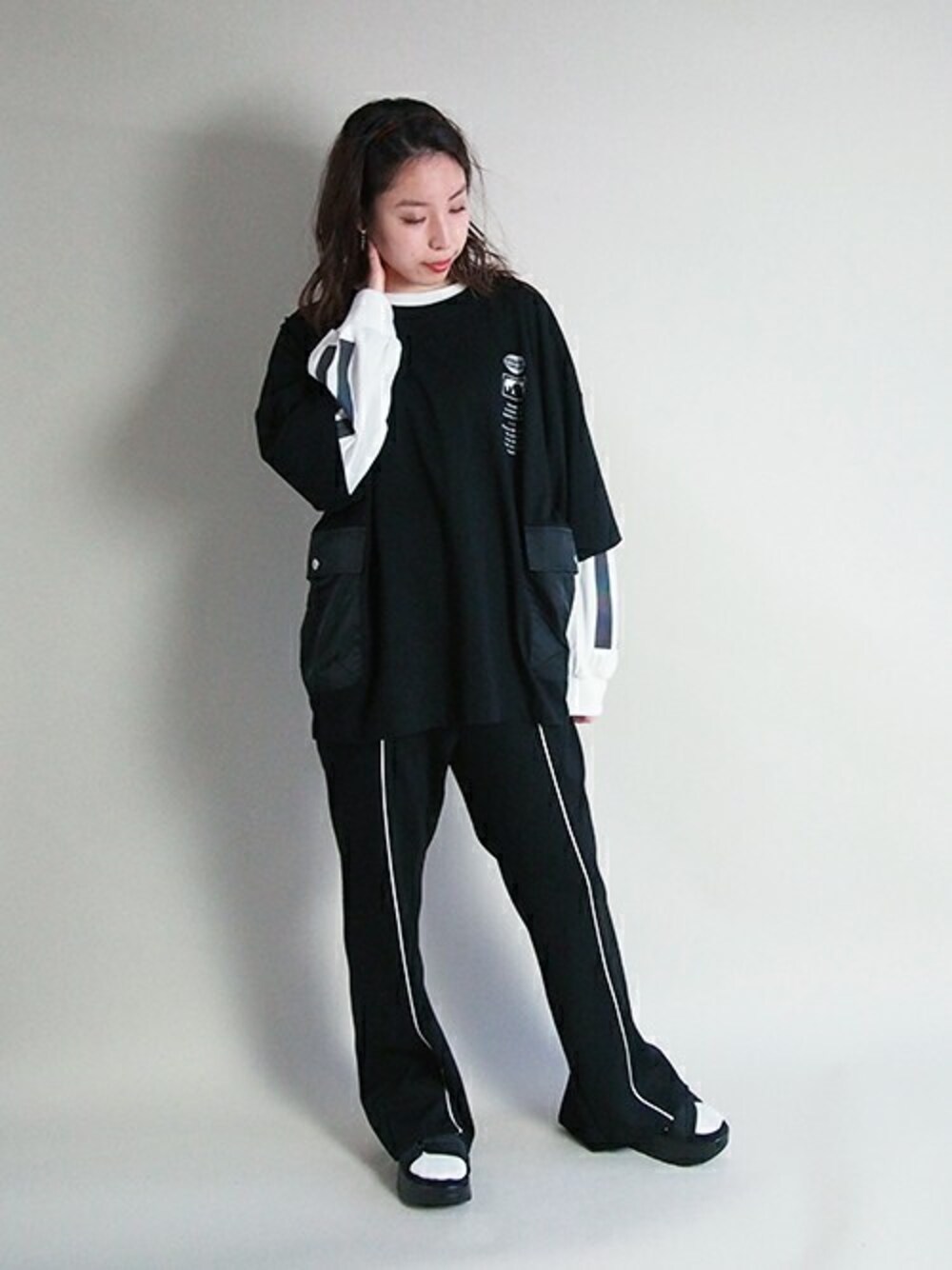 ニコルのTシャツ/カットソー「異素材ポケットビッグTシャツ」を使ったコーディネート