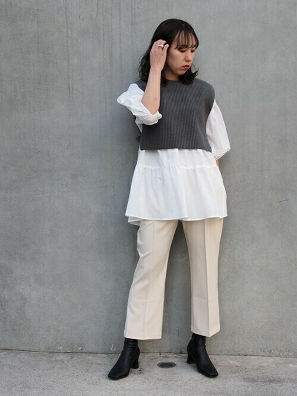 ニコルのアンサンブル「ビスチェ&ティアードブラウスセット」を使ったコーディネート