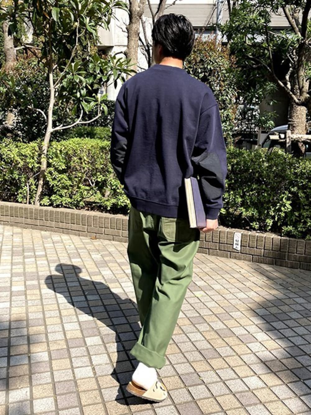 ネイビー×カーキ 相性の良いカラーコーデ。 少しユルメなシルエット、同配色の異素材もポイント。 【BROOKLYNOVERALL Instagram:@brooklynoverall】