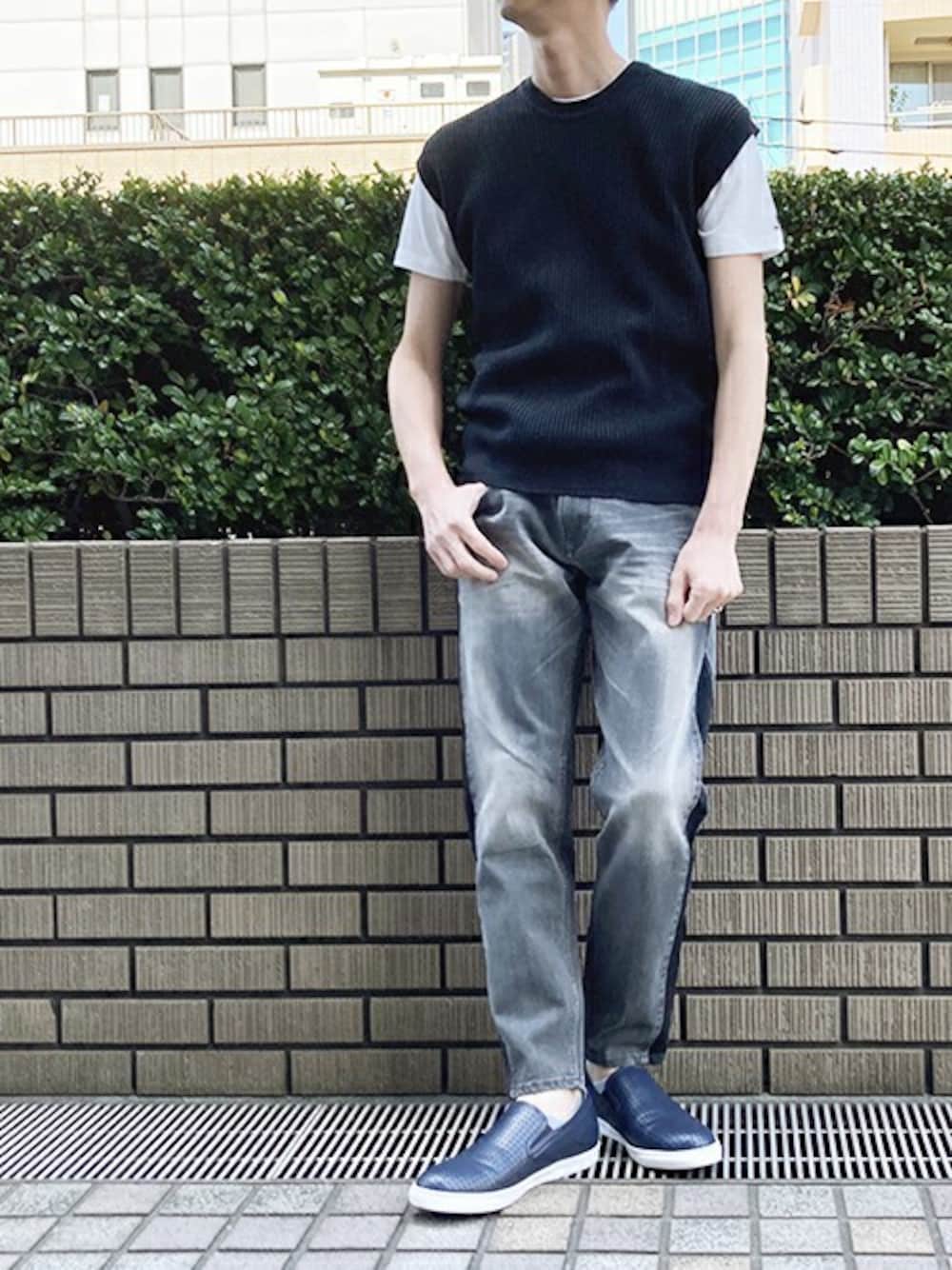 ニコルのアンサンブル「ニットベスト&Tシャツセット」を使ったコーディネート