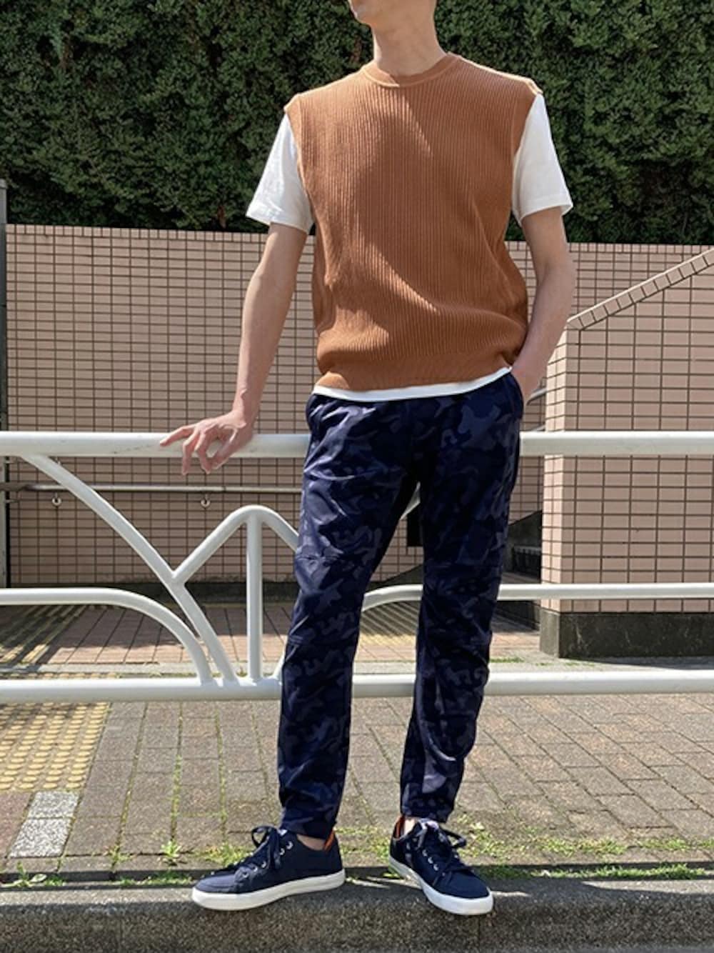 ニコルのアンサンブル「ニットベスト&Tシャツセット」を使ったコーディネート