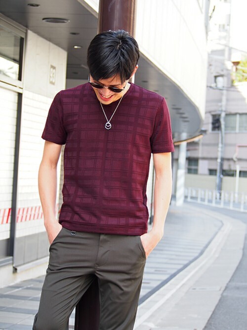 ニコル(ニコル本社)のTシャツ/カットソー「リンクスチェックVネックカット」を使ったコーディネート