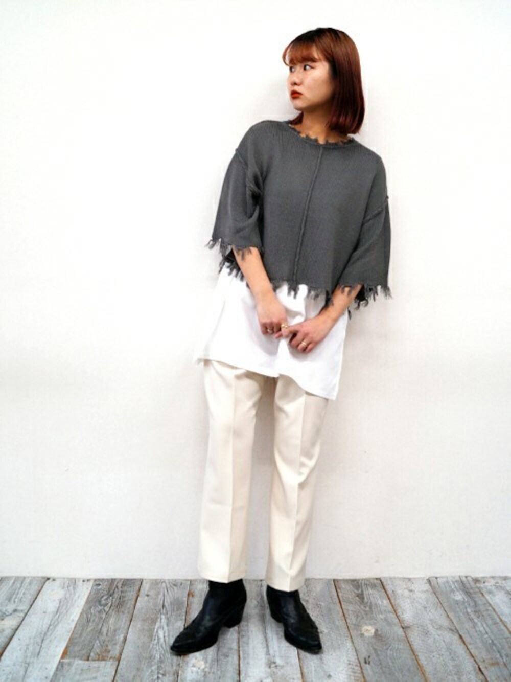 ニコルのアンサンブル「ダメージニットセット」を使ったコーディネート