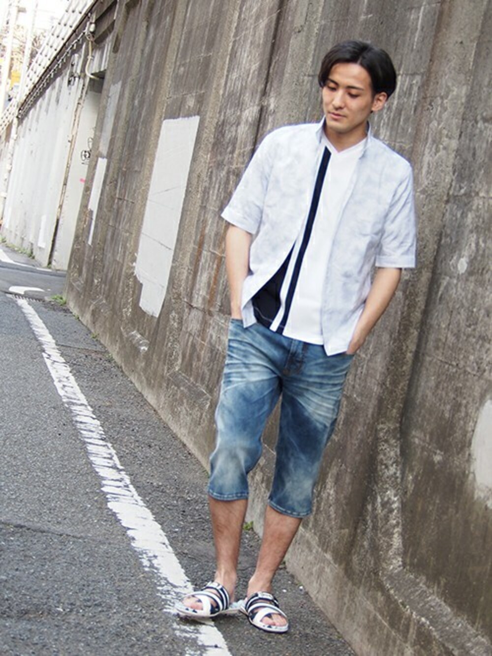 ニコルのシャツ/ブラウス「刺し子風ジャカード半袖シャツ」を使ったコーディネート