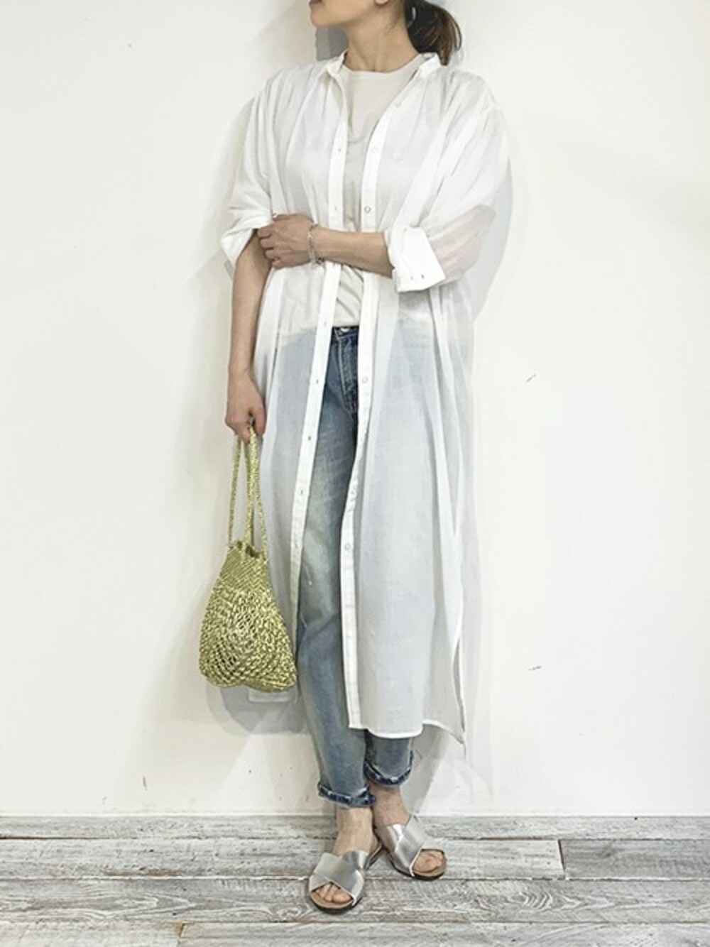 ニコルのシャツ/ブラウス「シアーロングシャツ」を使ったコーディネート