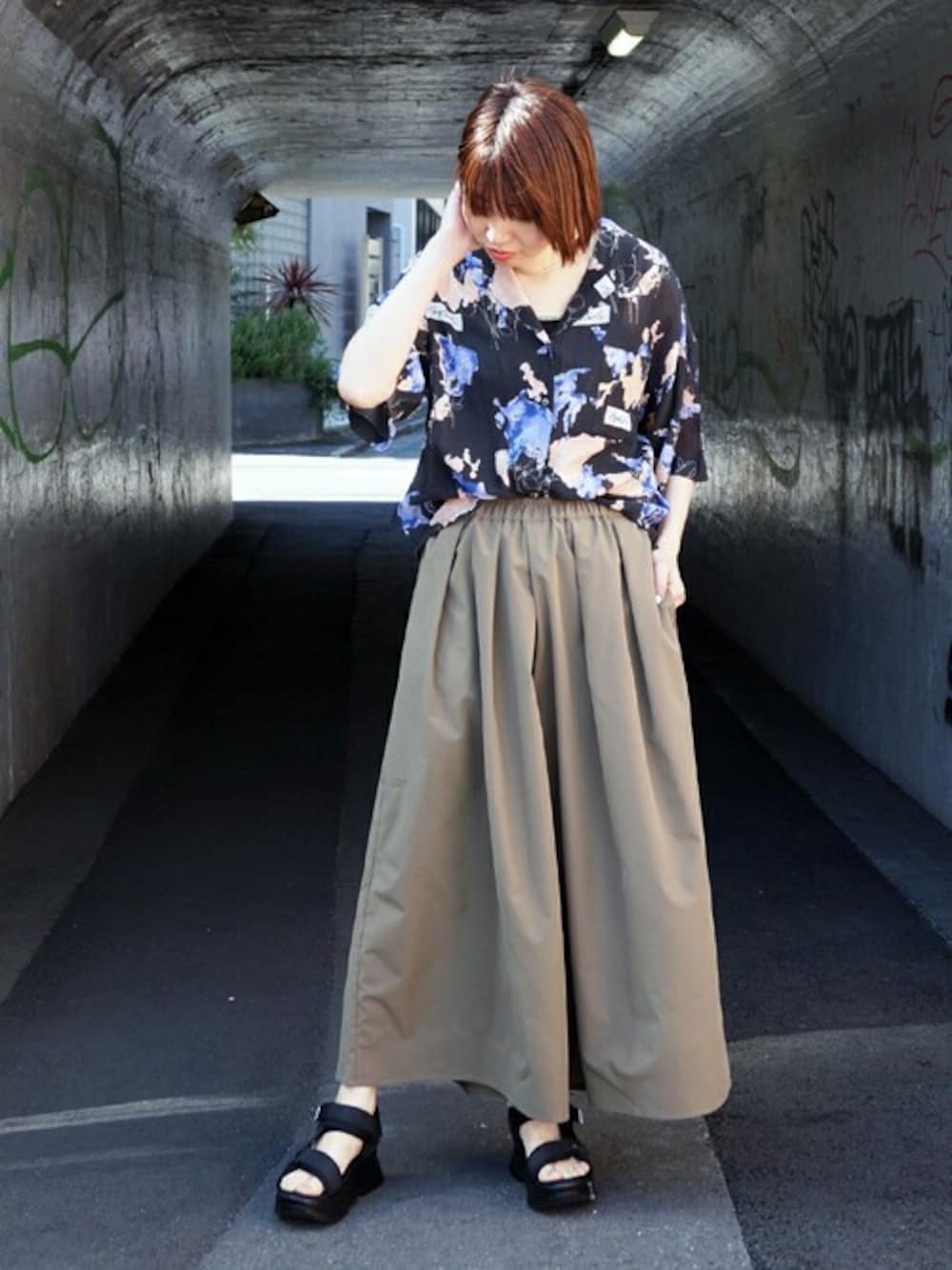 ニコルのシャツ/ブラウス「ビンテージプリント開襟シャツ」を使ったコーディネート
