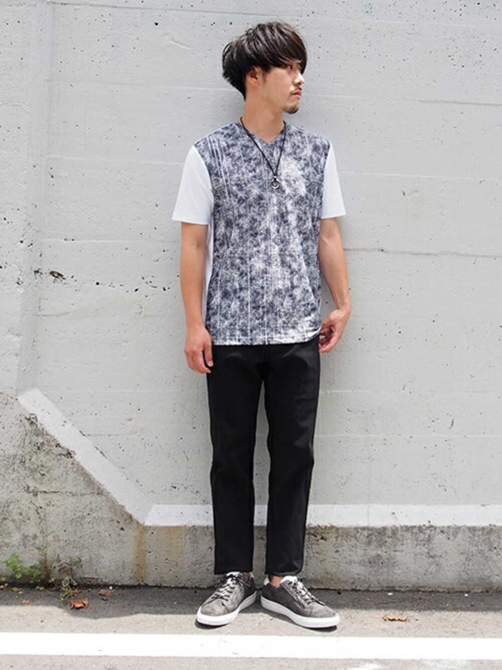 ニコル(ニコル本社)のTシャツ/カットソー「ボタニカル風柄切り替え半袖Tシャツ」を使ったコーディネート
