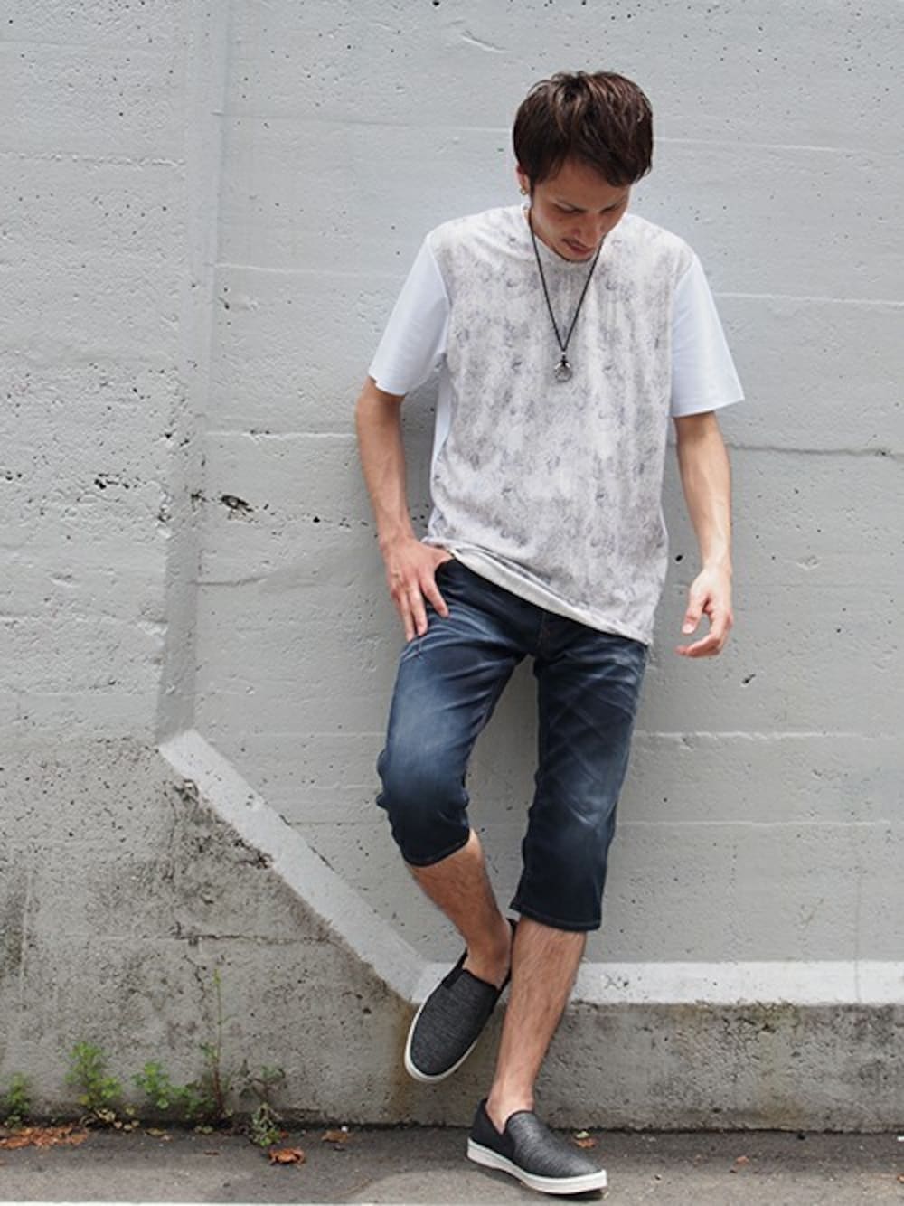 ニコルのTシャツ/カットソー「ボタニカル風柄切り替え半袖Tシャツ」を使ったコーディネート