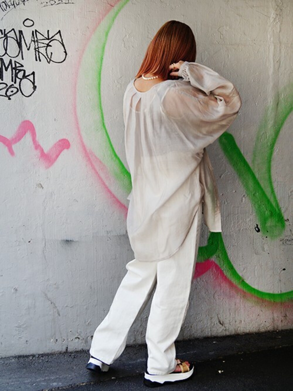 ニコルのシャツ/ブラウス「【WEB限定】ノーカラーシアーシャツ」を使ったコーディネート