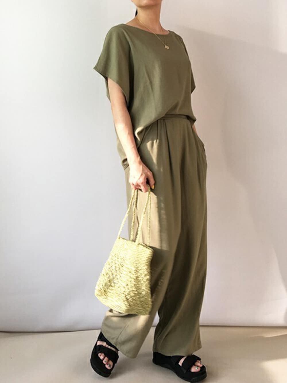 ニコルのアンサンブル「半袖カットソーセットアップ」を使ったコーディネート