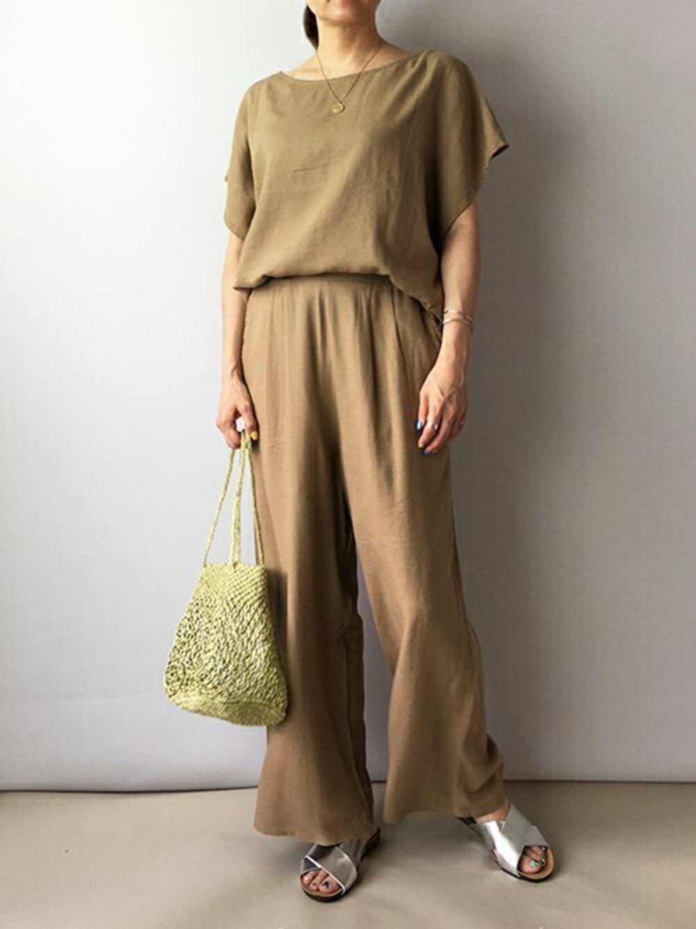 ニコルのアンサンブル「半袖カットソーセットアップ」を使ったコーディネート