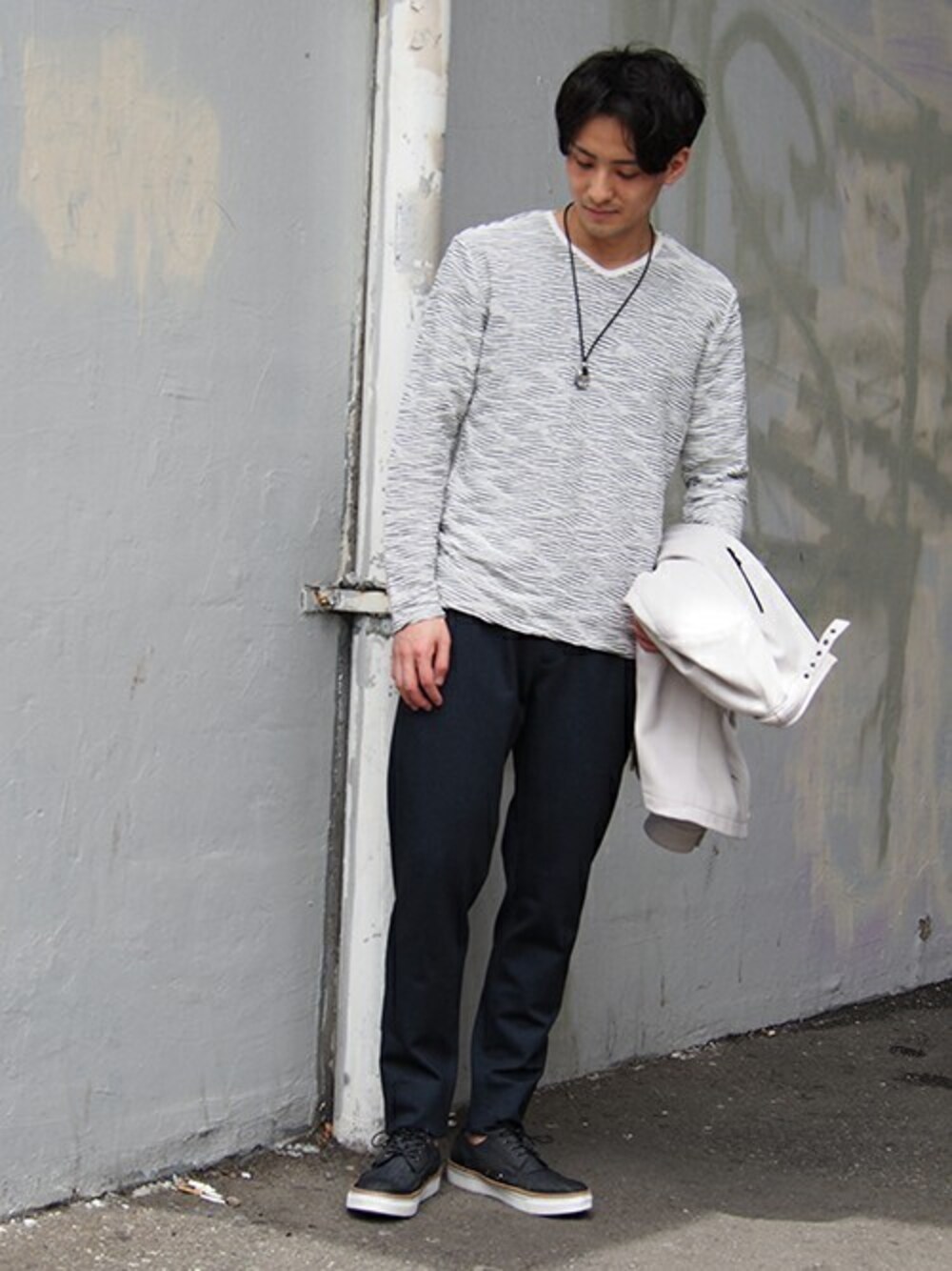 ニコルのTシャツ/カットソー「ウェーブブリスタージャカードVネックプルオーバー」を使ったコーディネート