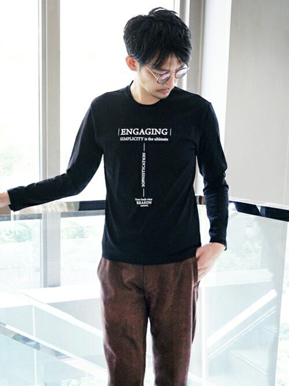 ニコルのTシャツ/カットソー「ダブルシルケットロゴプリント長袖プルオーバー」を使ったコーディネート