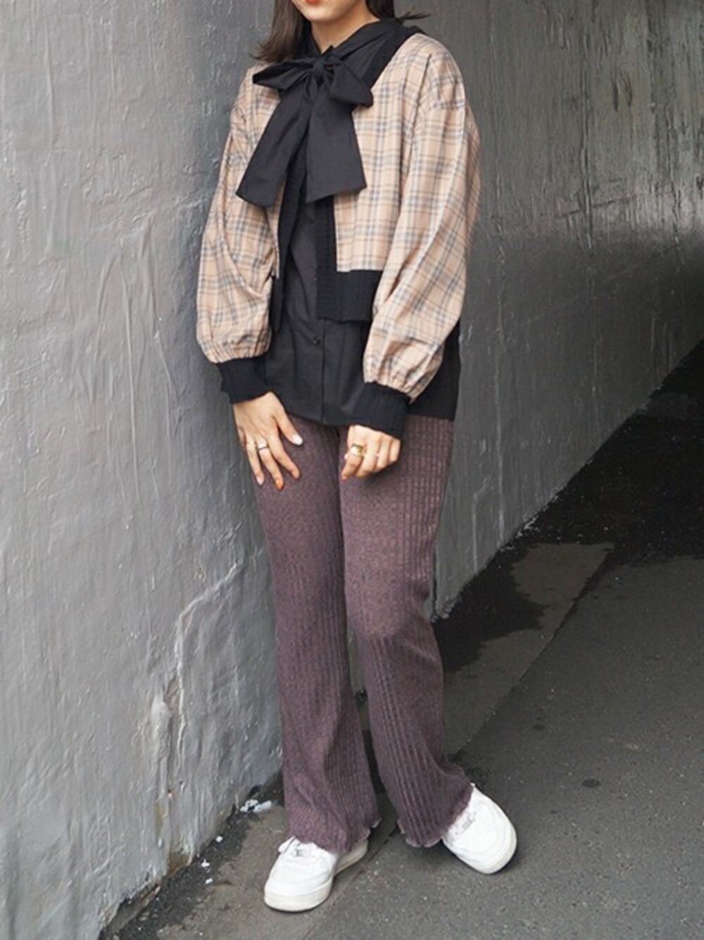 ニコルのカーディガン/ボレロ「チェックシャツリメイクカーディガン」を使ったコーディネート