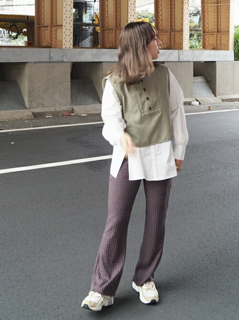 ニコルのアンサンブル「フィッシャーマンベストブラウスセット」を使ったコーディネート