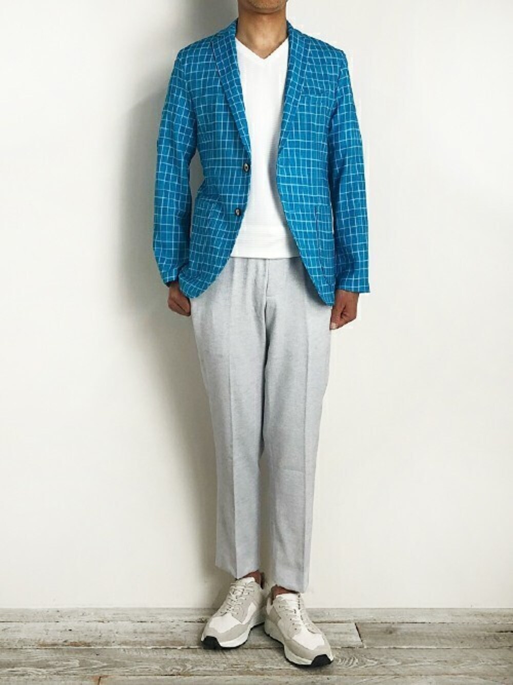 Holiday JKT Style。 エアコンが効いた室内で、 ちょっと羽織りたくなる爽やかジャケット。 着ない時にはカバンに入れてもシワになりません。 ホワイトVネックTと、 薄いブルーを織り交ぜたホワイトパンツ&白スニーカーで 清涼感あるSportスタイルを目指しました。 【MONSIEUR NICOLE Instagram】 @monsieur.nicole