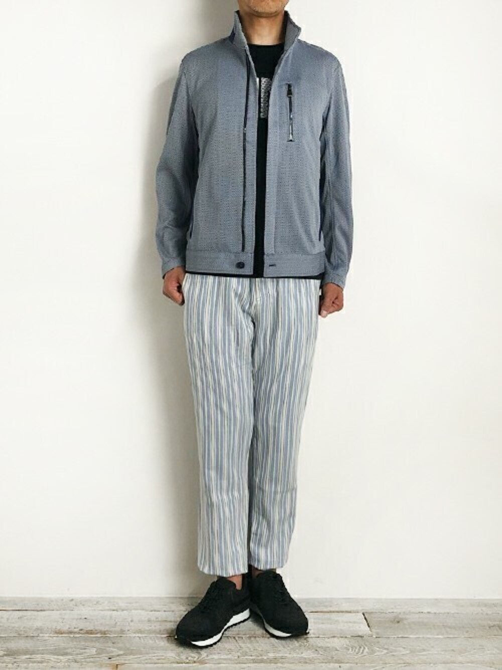 スタンドブルゾン Style。 ヘリンボーン柄ジャカードニットを使用した スタンドブルゾンを羽織りました。 見た目とは裏腹に、超軽量で通気性も抜群です。 速乾でシワにもならない、夏仕様ブルゾンです。 パンツはウエストゴム仕様のトラックパンツです。 大人なラグスポStyleを目指しました。 【MONSIEUR NICOLE Instagram】 @monsieur.nicole