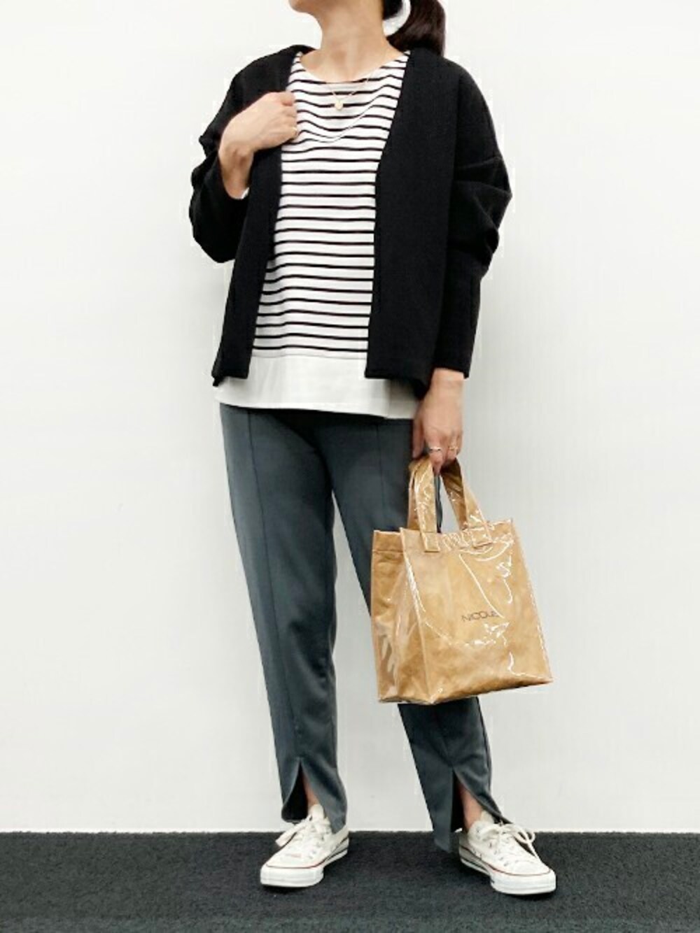 ニコルのカーディガン/ボレロ「ノーカラー ボタンレス カーディガン」を使ったコーディネート