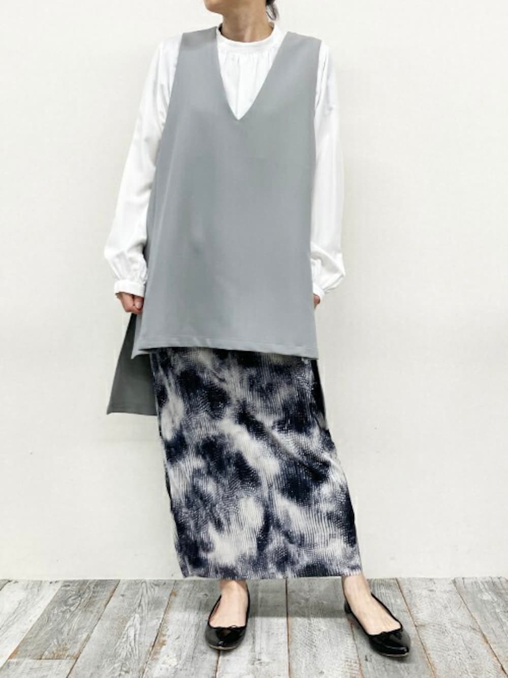 ニコルのシャツ/ブラウス「Vベスト×スタンドギャザーブラウスSET」を使ったコーディネート