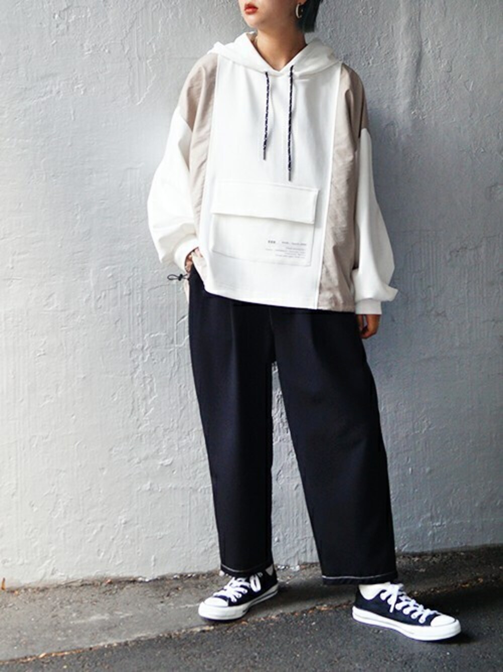 ニコルのパーカー「ドッキングフードプルオーバー」を使ったコーディネート