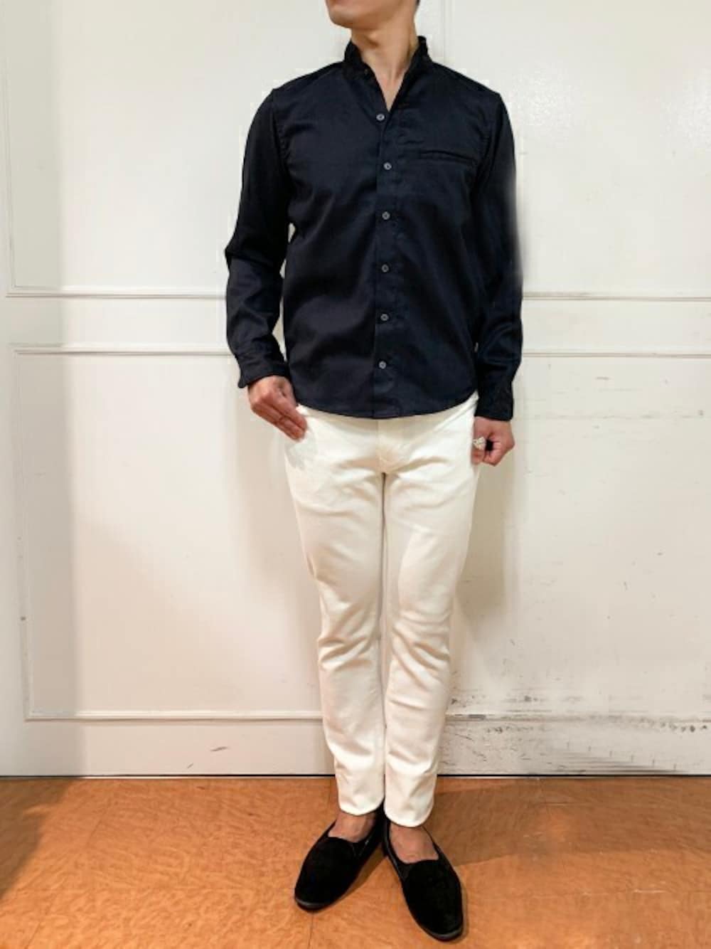ニコルのシャツ/ブラウス「ストレッチスエード スタンドカラーシャツ」を使ったコーディネート
