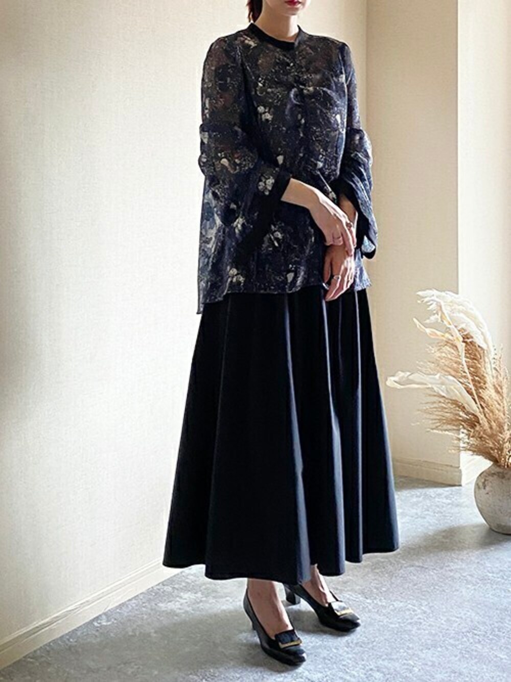 ニコルのシャツ/ブラウス「【NICOLE CLUB】ニュアンスストーン柄ギャザーブラウス」を使ったコーディネート