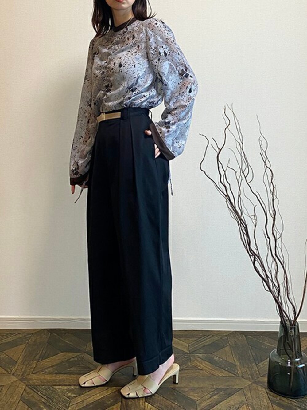 ニコルのシャツ/ブラウス「【NICOLE CLUB】ニュアンスストーン柄ギャザーブラウス」を使ったコーディネート