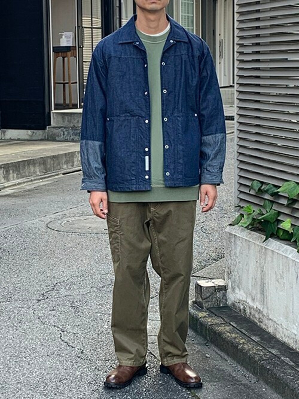 ニコルのブルゾン「袖切り替え デニムカバーオール」を使ったコーディネート