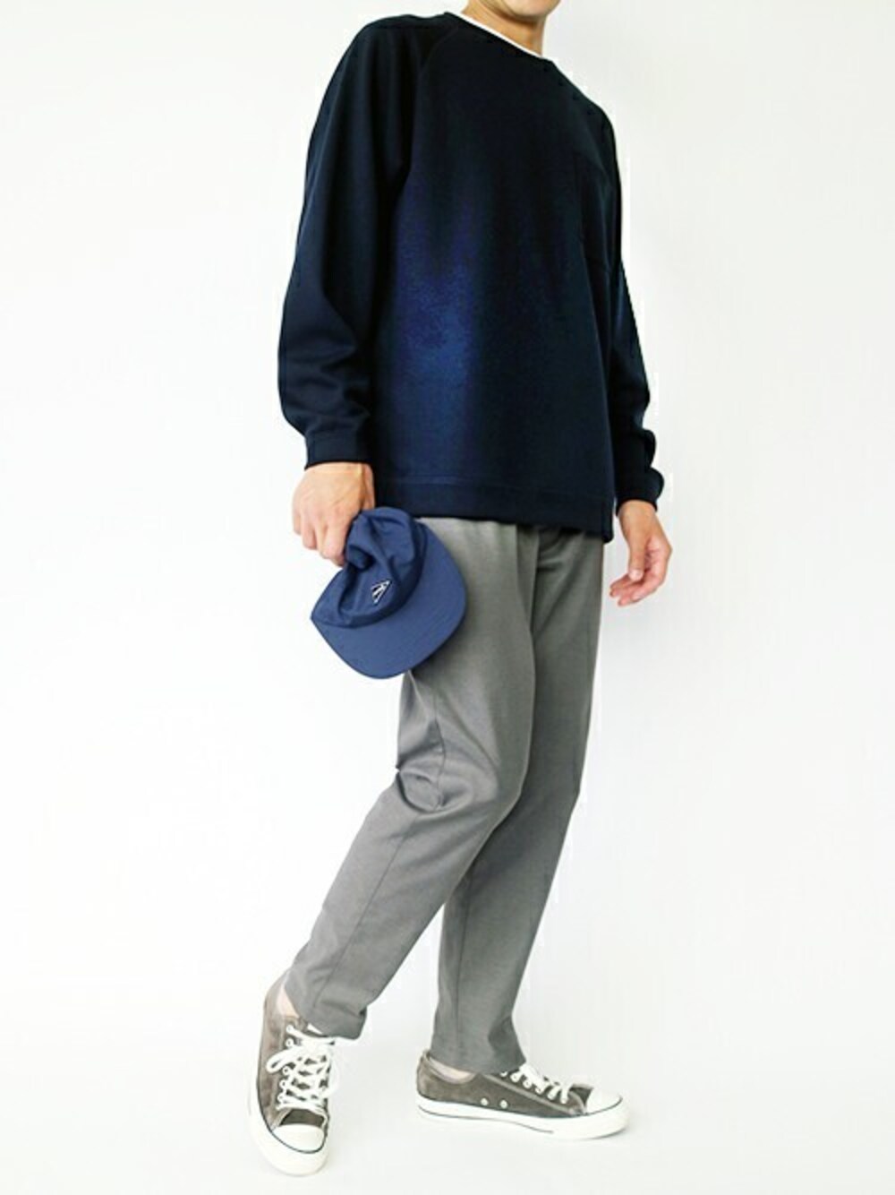 ニコルのチノパンツ「ツイルストレッチイージーテーパードパンツ」を使ったコーディネート