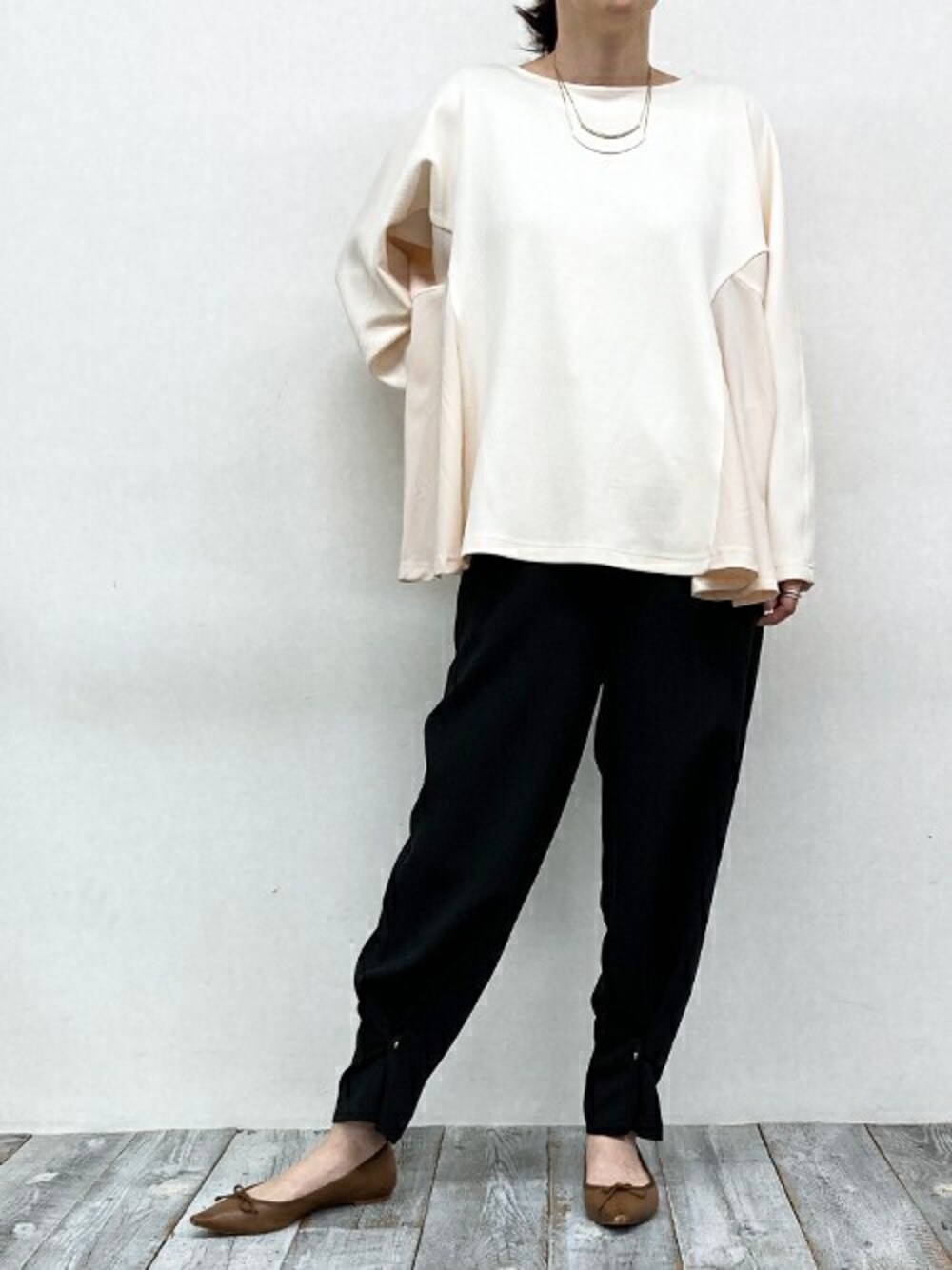 ニコルのTシャツ/カットソー「サイド異素材使いフレアーTEE」を使ったコーディネート